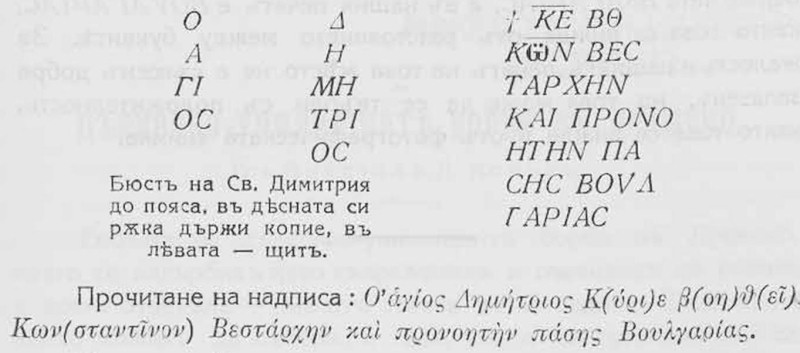 Преводъ: Господи, помагай на Константина вестархъ и проноитъ (промислитель) на цѣла България!