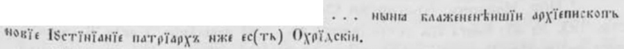 Наистина, ние имаме официални известия едвамъ отъ края на XVII в., че охридскитѣ архиепископи приписвали на своя престолъ патриаршеско достойнство, [2] а първиятъ документъ, отъ който се вижда, че и турското правителство е наричало охридския архиепископъ патриархъ, е ферманътъ на