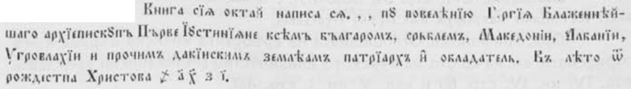 . Обаче тъкмо въ това съгласие между датитѣ на Доротеевото писмо и послесловието на дяка Димитъръ въ преписания отъ него номоканонъ Богданъ вижда ново основание за мнението си, че писмото е фалшиво и съчинительтъ му е взелъ тази дата (6975 г.) отъ послесловието на дяка Димитъръ. Богданъ намира и трето основание въ обстоятелството, че въ Доротеевото писмо индиктътъ а҃ не съответствува на 1466 или 1467 г., а на 1468 г. Тази грѣшка се дължела на туй, че фалшификаторътъ криво е пресмѣтналъ индикта. Четвърто основание за своето твърдение Богданъ намира въ думитѣ, отбелязани отъ Григоровича съ моливъ въ самия рѫкописъ, че поправката въ писмото на Доротея била направена въ Влашко „для уравненія индиктіона". Отъ тази бележка той заключава, че Григоровичъ е намѣрилъ номоканона заедно съ писмата не въ Рилския монастиръ, както казвалъ Григоровичъ на Laurian и Balcescu, а въ нѣкой отъ монастиритѣ въ Влашко, може би въ Бистришкия, дето Григоровичъ е намѣрилъ хронографа на Мокса. И отъ туй Богданъ заключава, че писмата на Стефанъ Молдавски и Доротея Охридски сѫ били приложени къмъ преписания отъ дяка Димитъръ номоканонъ отъ нѣкой унгровлашки монахъ, защото единъ такъвъ монахъ по-добре могълъ да знае за църковнитѣ отношения между Молдава и Охридъ изъ молдавскитѣ хроники, които се пишели презъ времето на Стефана Велики и били познати въ Влашко, отколкото единъ дякъ отъ Кратово или отъ Охридъ, или рилски монахъ. [1] Че писмата сѫ били съчинени презъ XVII в., Богданъ намира основание и въ титлата на охридския архиепископъ въ тѣхъ: „архиепископъ на Първа Юстиниана и всички българи и сърби и обладатель на Дакийскитѣ земи". Тя била употрѣбителна не въ XV в., а въ XVII—XVIII в.: изразъ „Дакіискимъ Земл