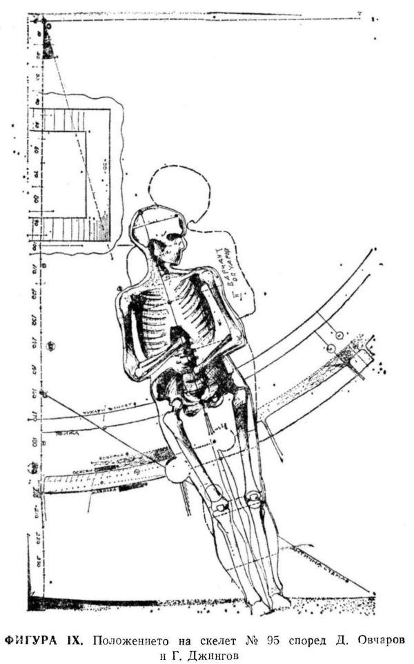 Фигура IX. Положението на скелет № 95 според Д. Овчаров и Г. Джингов