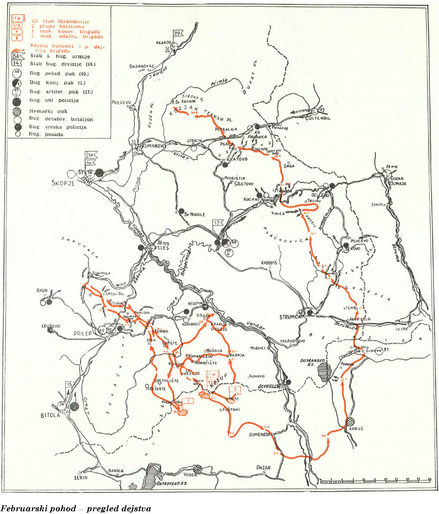 Ovakva zamisao februarskog pohoda pokazuje želju CK KPM i Glavnog štaba Makedonije da se što pre razbukti ustanak u celoj Makedoniji. Izbijanjem, pak, na kozjački masiv i objedinjavanjem dejstva svih jedinica u rejonu Crne Trave, Vranja, Kumanova i Krive Palanke trebalo je realizovati i još više iskoristiti mogućnosti koje je ova teritorija pružala za dejstvo ka komunikacijama Niš — Skopje i ka Kosovu, Srbiji, istočnoj Makedoniji i Bugarskoj.