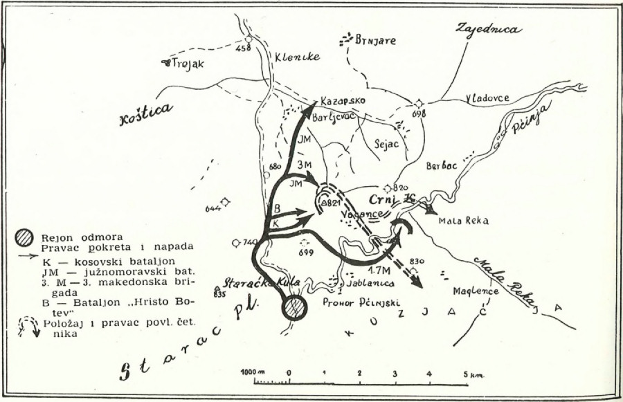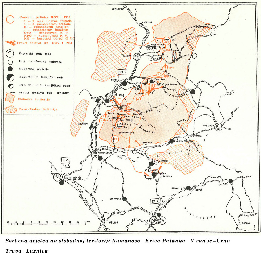 U rejonu Kumanova, Vranja i Crne Trave dejstvovale su južnomoravske, kosovske i makedonske jedinice. Ova teritorija predstavljala je centralnu oblast za razvijanje akcija ka glavnoj komunikaciji Niš — Skopje, za povezivanje akcija sa Srbijom, za prodiranje ka Kosovu, istočnoj Makedoniji i Bugarskoj, pa prema tome i za pomoć bugarskom pokretu otpora.