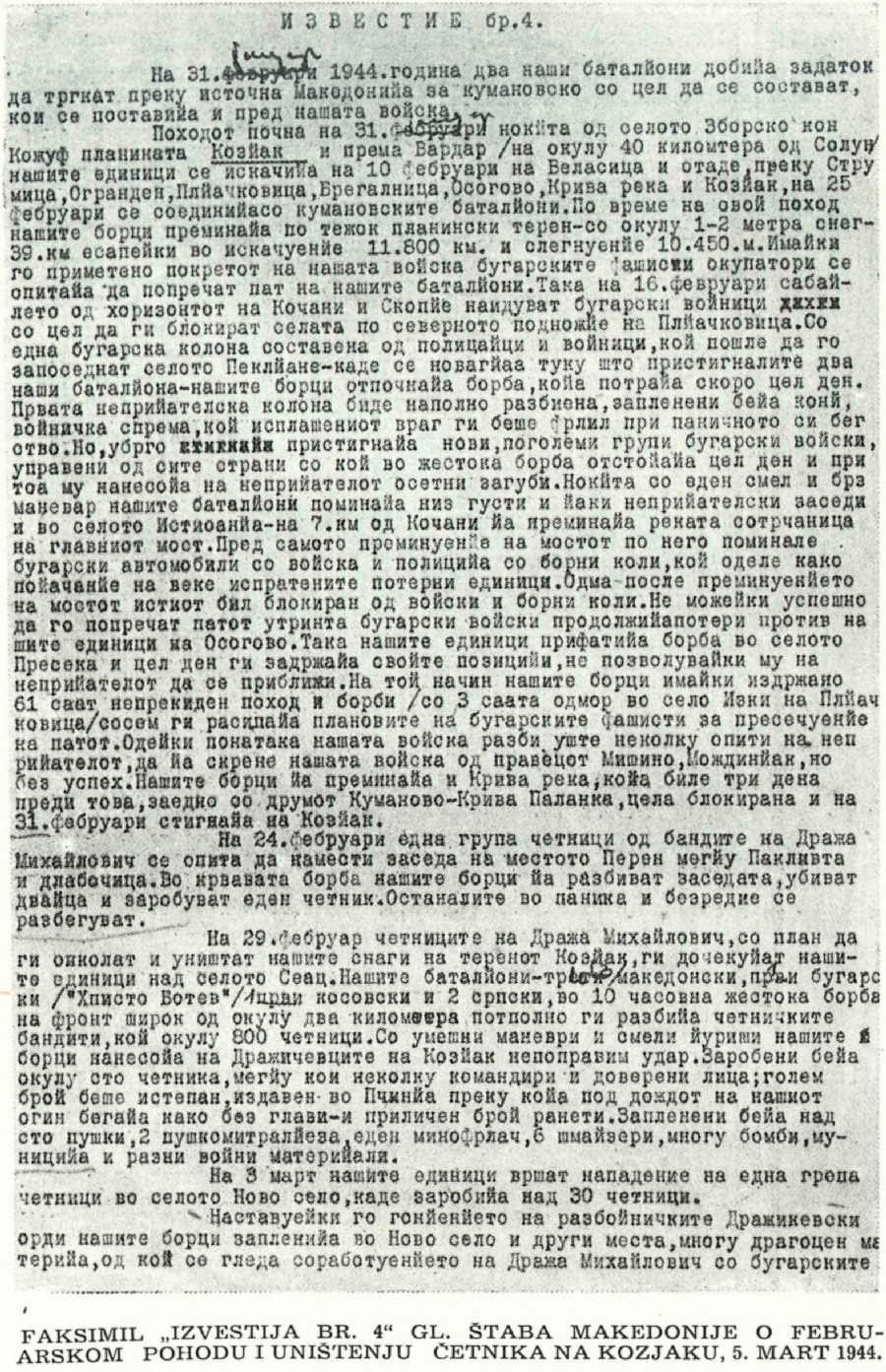 OPERACIJE JEDINICA NOV I POJ MAKEDONIJE NA KOSOVU (FAKSIMIL)