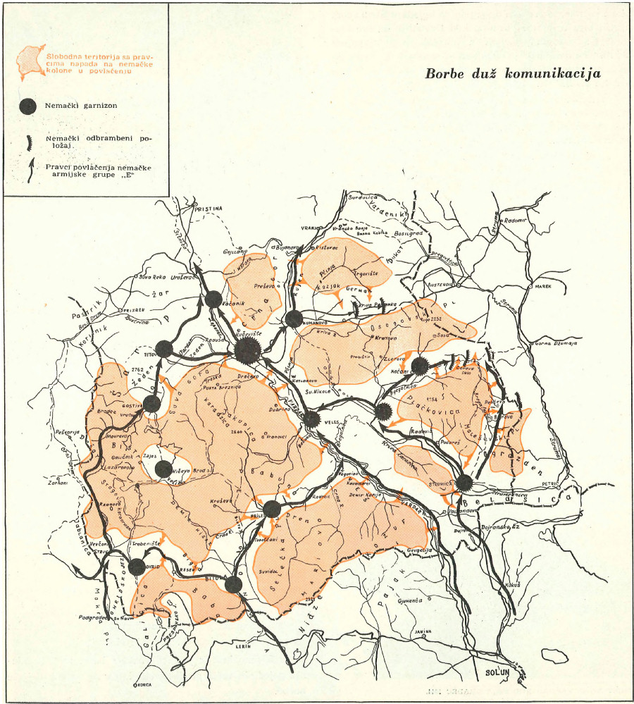 Međutim, na karti se nisu mogla prikazati dejstva mnogobrojnih teritorijalnih jedinica, koje su, zajedno sa divizijama, napadale nemačke položaje i kolone. U ovim akcijama učestvovalo je osam komandi područja sa po jednim bataljonom, pionirskim vodom i drugim jedinicama, zatim 34 komandi mesta sa po jednom četom i devet partizanskih odreda.