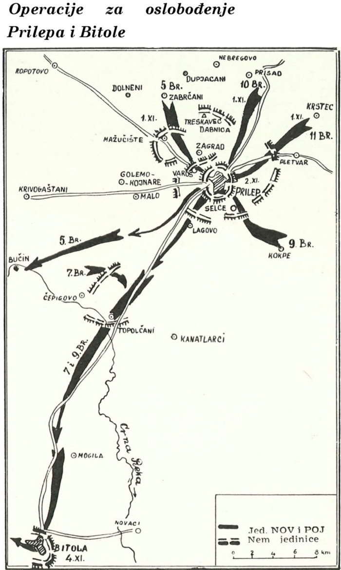 U oktobru 1944. godine, jedinice 15. korpusa Narodnooslobodilačke vojske i partizanskih odreda Jugoslavije preduzele su ofanzivne operacije za oslobođenje Prilepa i Bitole. U teškim borbama, vođenim od 29. oktobra do 2. novembra 1944. godine, 41. i 49. narodnooslobodilačka divizija u čiji su sastav ulazile i 5, 7, 9, 10. i 11. brigada, ponovo su oslobodile grad Prilep. U borbama za Prilep rešena je bila i sudbina Bitole. Tako, 4. novembra 1944. godine, 49. narodnooslobodilačka divizija, pomognuta 1. egejskom udarnom brigadom i jedinicama komande područja Bitole oslobodila je Bitolu.