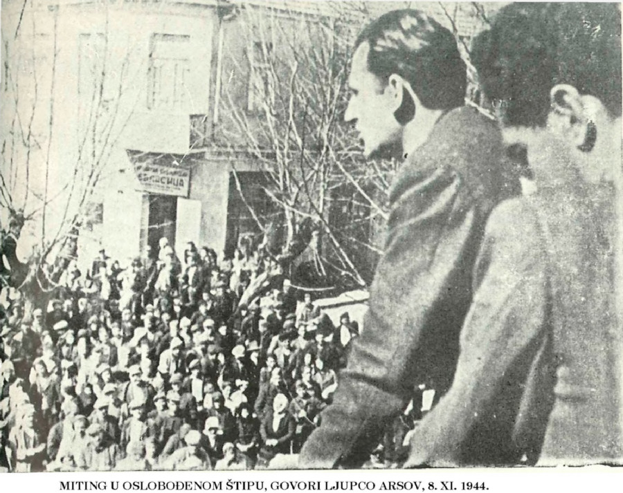 MITING U OSLOBOĐENOM ŠTIPU, GOVORI LJUPCO ARSOV, 8. XI. 1944.