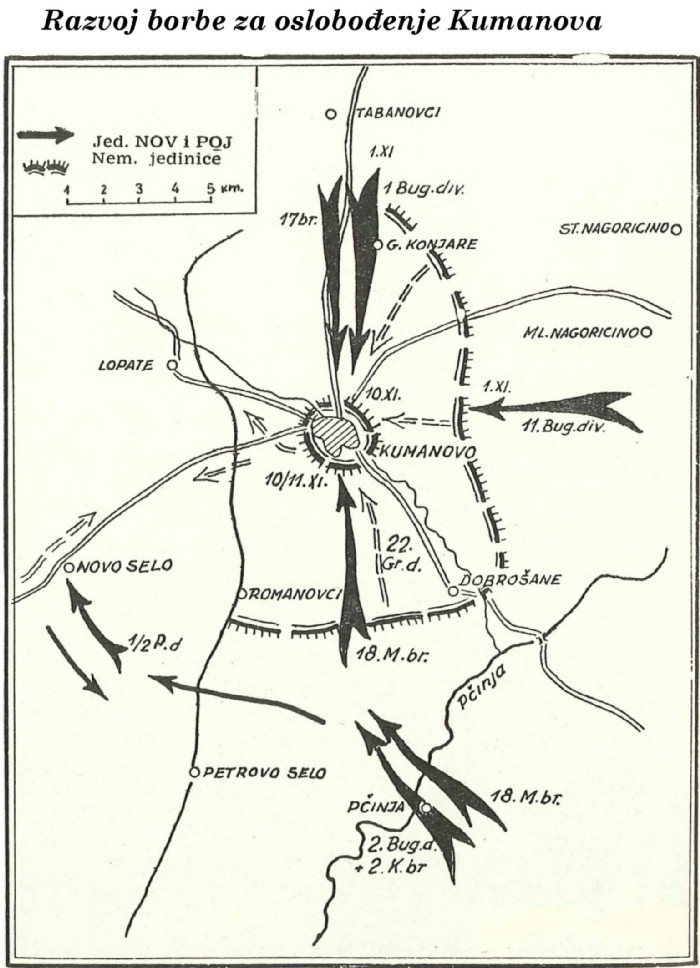 Posle dugotrajnih i teških borbi, 11. novembra 1944. godine, konačno su jedinice 1. otečestveno-frontovske bugarske armije i jedinice Kumanovske divizije oslobodile grad Kumanovo.