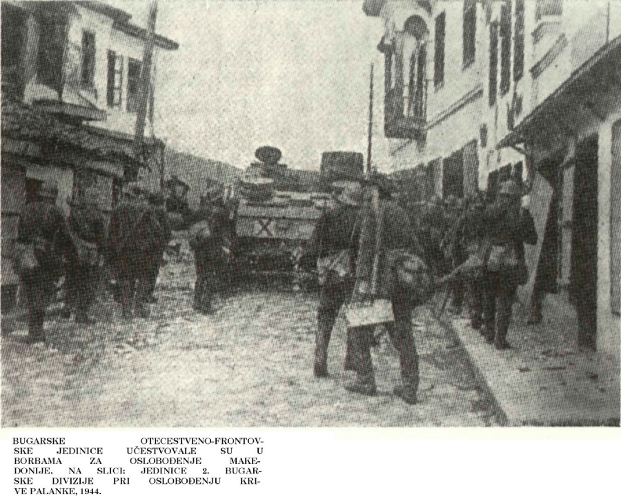 BUGARSKE OTECESTVENO-FRONTOVSKE JEDINICE UČESTVOVALE SU U BORBAMA ZA OSLOBOĐENJE MAKEDONIJE. NA SLICI: JEDINICE 2. BUGARSKE DIVIZIJE PRI OSLOBOĐENJU KRIVE PALANKE, 1944.
