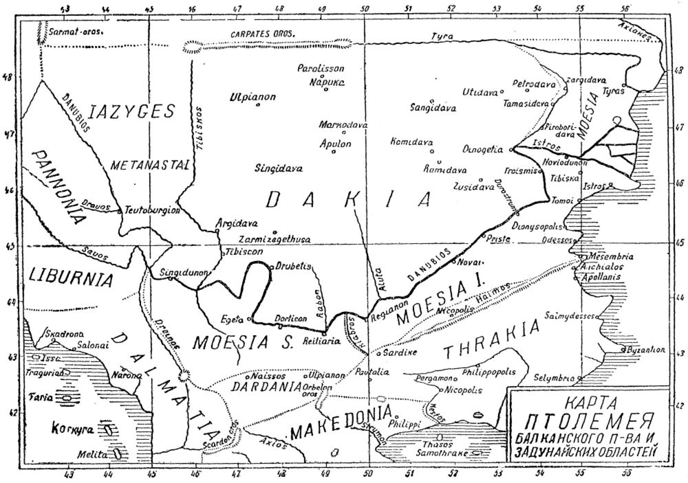 - Карта Птолемея Балканского п-ва и задунайских областей