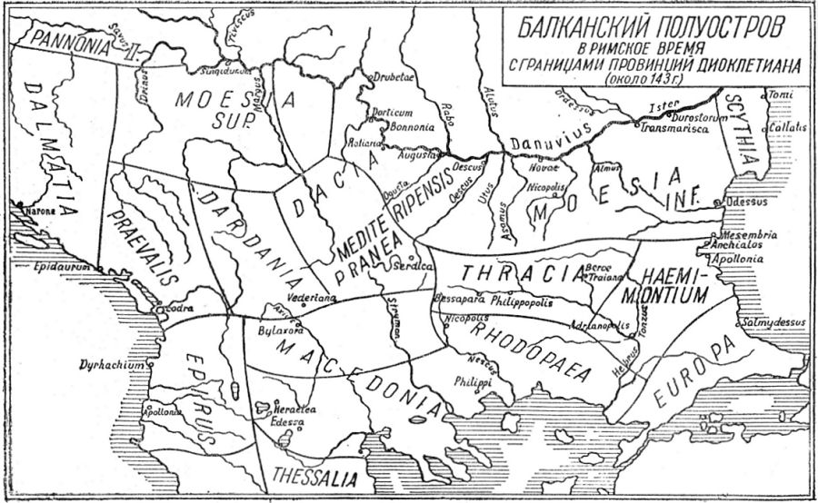 - Балканский полуостров в римское время с границами провинций Диоклетиана (около 143 г.)
