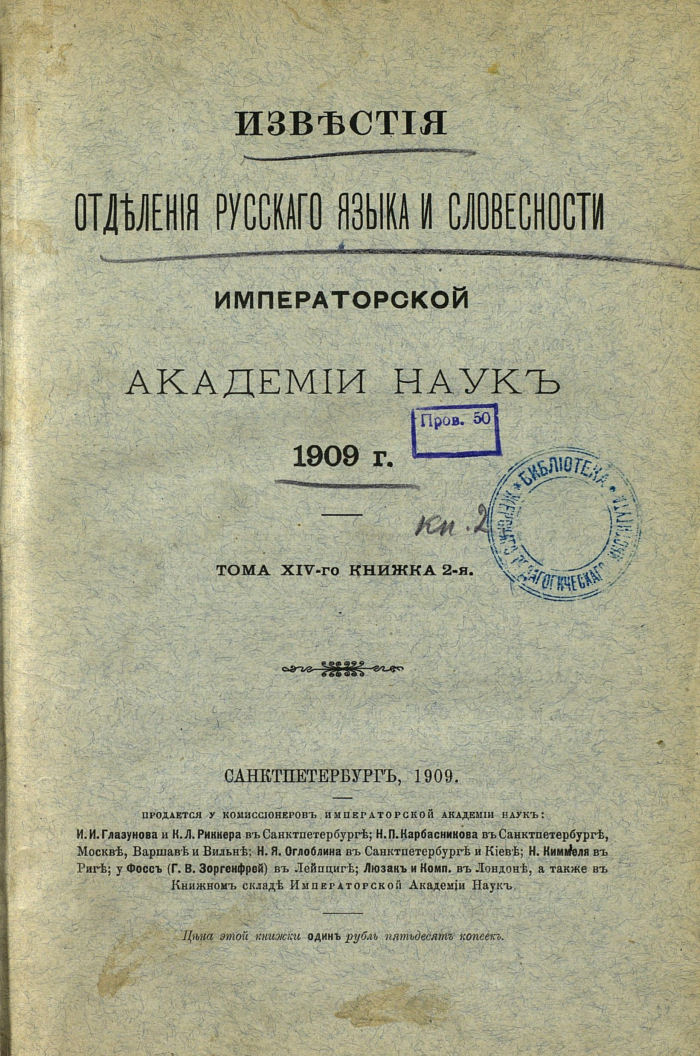 Извѣстія Императорской Академіи Наукъ, Санктпетербургъ, 1909. Тома XIV-ого книжка 2-я, с. 323-335