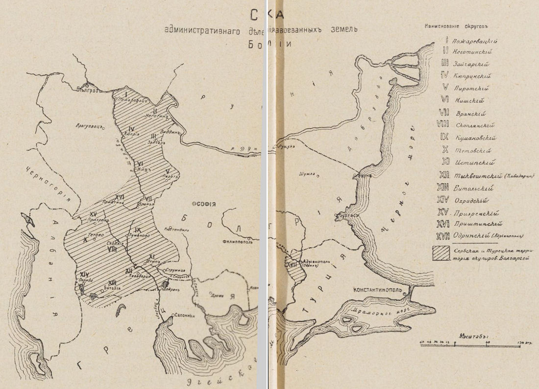 - Схема административнаго дѣленія завоеванныхъ земель Болгаріи