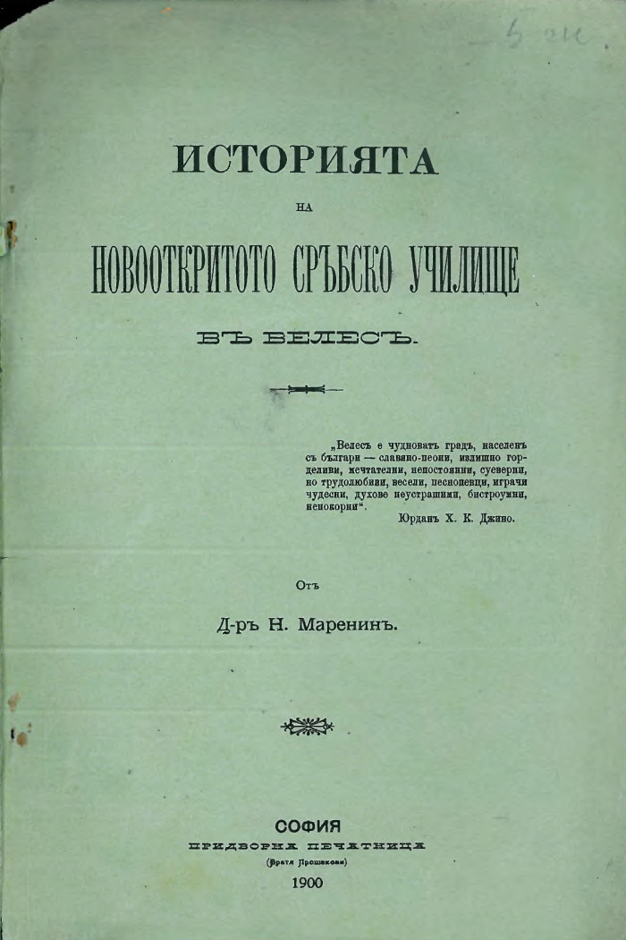 кого се чувствуваше тя, за да се отвори това училище? Какъ се държа населението въ този градъ при отварянието на сръбското училище? — Това са въпросите, на които даваме отговоръ въ редовете, които следватъ.