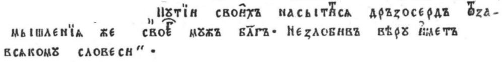 По благодати божии данного нам Исус Христомъ на утверждение земъли, и на крѣпость, и на устроение человечьскому роду, и яко же боголюбивымъ и богоугоднымъ, хощу вамъ внести слово".