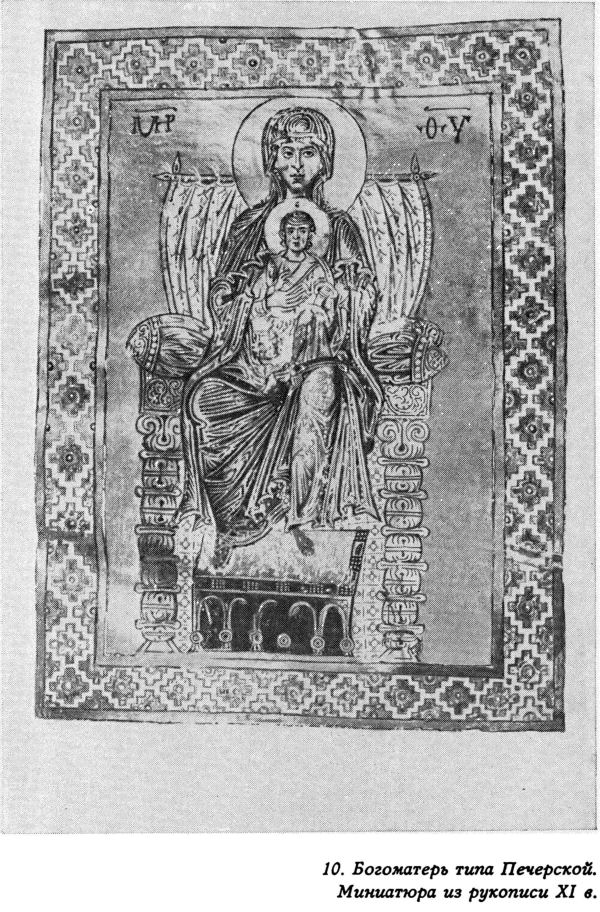 10. Богоматерь типа Печерской. Миниатюра из рукописи «Кодекс Гертруды». XI в. Город Чивидале, Италия, соборный архив. Из кн.: Кондаков Н. П. Изображения русской княжеской семьи в миниатюрах XI в. СПб., 1906. Табл. V.