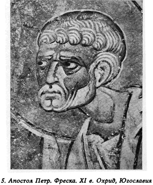 5. Апостол Петр. XI в. Фреска в соборе св. Софии в Охриде. Из кн.: Ђурић В. Црква свете Софије у Охриду. Београд, 1963. Илл., № 5.