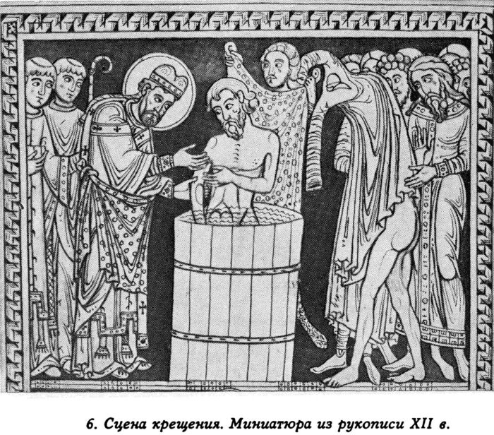 6. Сцена крещения. Миниатюра из рукописи XII в.