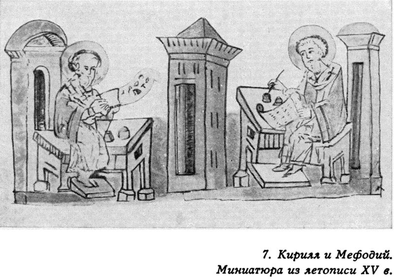7. Кирилл и Мефодий. Миниатюра из летописи XV в.