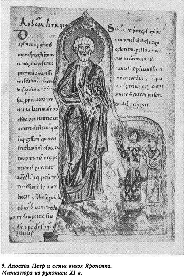 9. Апостол Петр и семья князя Ярополка. Миниатюра из рукописи XI в.