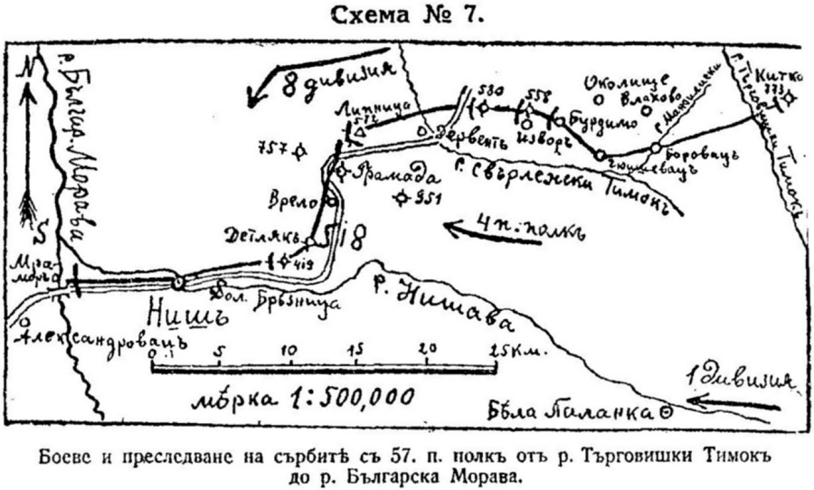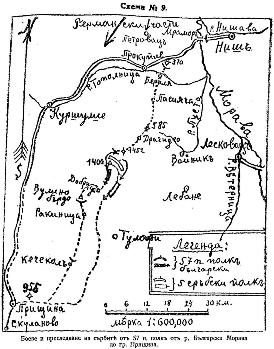 Боеве и преследване на сърбитѣ отъ 57 п. полкъ отъ р. Българска Морава до гр. Прищина