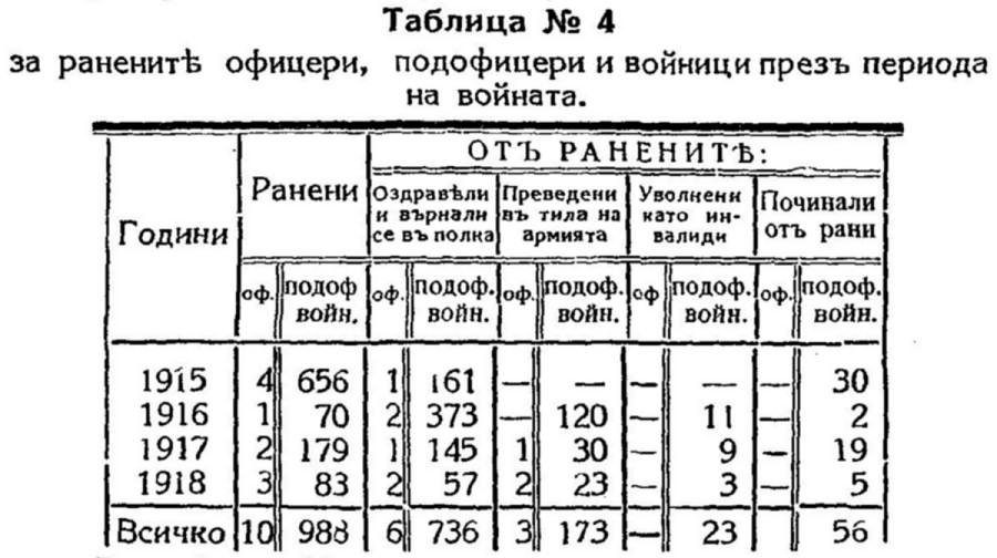 Въ таблица № 4 сѫ показани напустналитѣ временно полка като ранени.