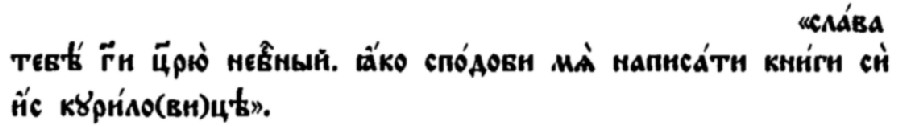 , можно объяснить так: я списал текст с «кириллицы» (читай — с глаголицы) на новую, реформированную св. Климентом, славянскую азбуку (читай — кириллицу; доказательство этому Шафарик нашел в одном списке этой рукописи — Лаврской (XIV-XV вв.), в которой встречаются не только глаголические буквы, но и целые слова, глаголическим шрифтом написанные; в этом же тексте присутствовало и специфически-глаголическое причастие «вышѧʹшти»; к тому же, считал Шафарик, переписчику было бы странно говорить о письме подлинника как о «кириллическом», ибо данное наименование вошло в обиход намного позднее;