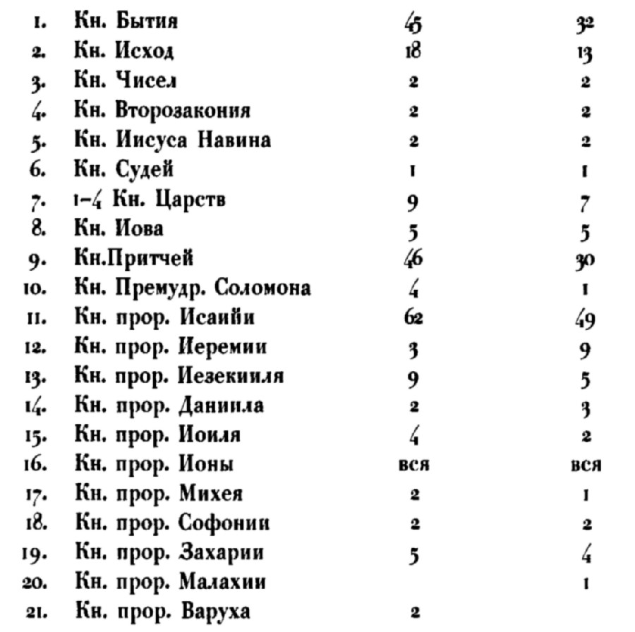 (*). Kyas V., Šarapatkova Ž. Přehled starozákonnich lekci staroslovenskeho parimejniku // Palaeoslovenica (1971)· C. 95-106. Цит. по: Иннокентий (Павлов). Славянская традиция Священного Писания и Острожская Библия // Острожская Библия. М., 1990. С. 25-26.