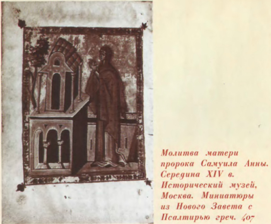 29. Молитва матери пророка Самуила Анны. Середина XIV в. Исторический музеи. Москва. Миниатюры из Нового Завета с Псалтирью греч.