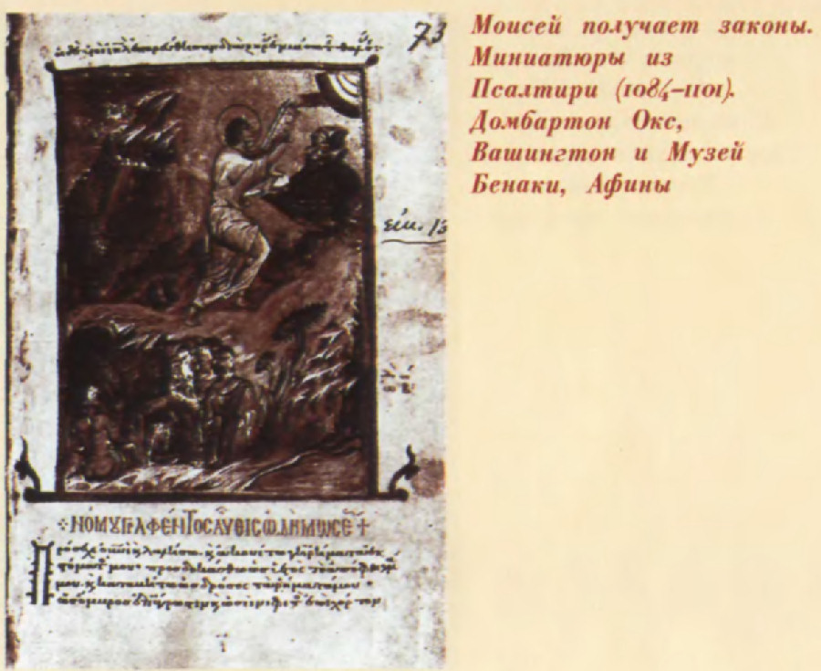 32. Моисей получает законы. Миниатюры из Псалтири (1084-1101). Домбартон Окс, Вашингтон и Музей Бенаки, Афины
