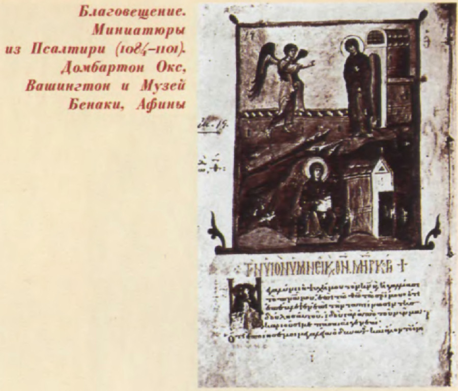 34. Благовещение. Миниатюры из Псалтири (1084-1101). Домбартон Окс, Вашингтон и Музеи Бенаки, Афины