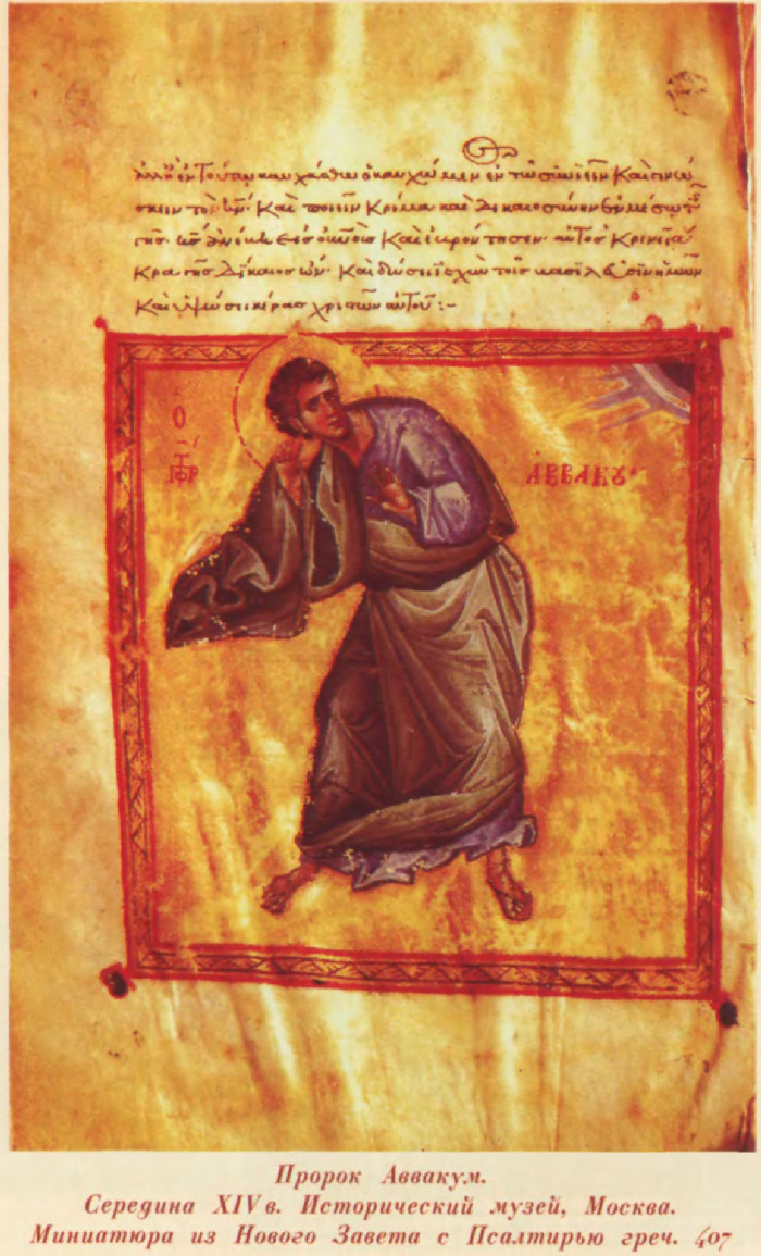37. Пророк Аввакум. Середина XIV в. Исторический музей, Москва. Миниатюра из Нового Завета с Псалтирью греч. 407