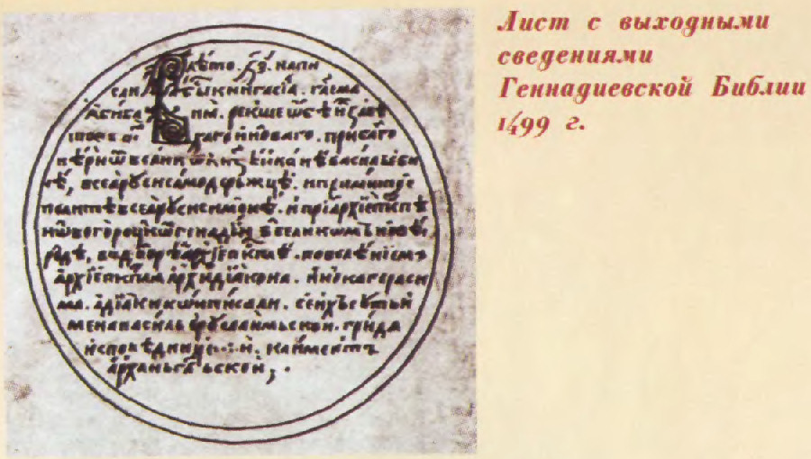 38. Лист с выходными сведениями Геннадиевской Библии 1499 г.