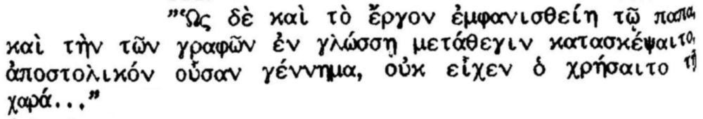 Според PG 126, 1194-1222 латинският превод приближава още повече формулата до традиционния език на Западната църква : "Cum... non intelligeret libros Graece conscriptos...”
