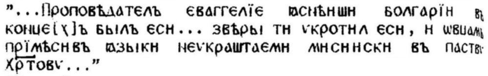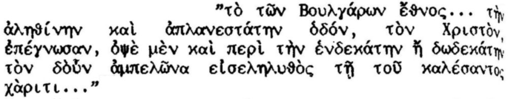 ... Под ʺОбретение” авторът разбира паметника, известен у нас повече като "Херсонска легенда". ... В текста се употребяват малко популярни днес названия на гръцки извори за Кирило-Методиевата епоха: