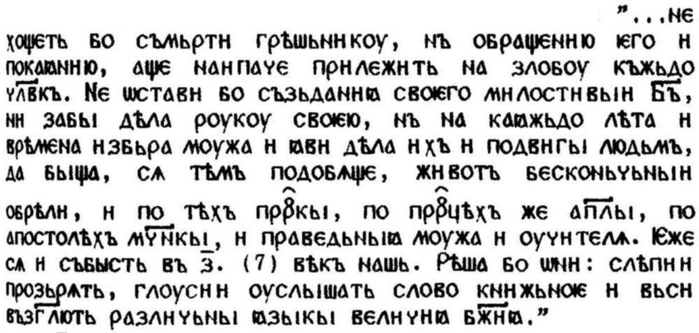 Не можем да си позволим да кажем нещо повече и за Похвално слово за Кирил, за проложните жития и за засвидетелстваните в Хрониката на Нестор данни за Кирил и Методий: несигурна е авторската традиция, а авторитетната е ограничена от агиографско-литургичното или историко-апологетичното предназначение на текстовете; ето защо и в тези случаи, след като за изходна точка служат преписи от XIV в. [15], преценката на действително препредадения текстов материал по отношение на структурно-композиционната индивидуалност на засвидетелстваните текстове трябва да бъде предпазлива.