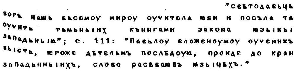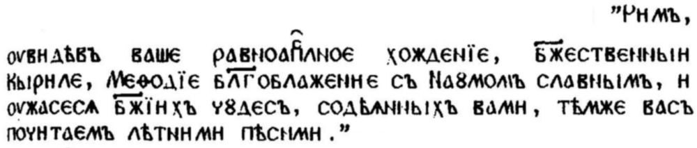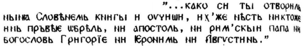 че първоначалната употреба на сирийския като помощен — успоредно с гръцкия — апостолски език отразява едно особено положение, което няма никаква връзка с общоприетата схема, и в продължение на векове ще бъде възприеман всякакъв езиков инструмент, който е в състояние да изяснява същността на текстовете, написани на религиозно кодифициран език. Същият интерпретативен критерий трябва да залегне и в основата на оценката за действителното предназначение на латинския — езиков инструмент от по-ниско, простолюдно ниво спрямо гръцкия — в Африка през II и III в. [47] Същността на разгърналия се в лоното на латинско-гръцкото християнство (веднага след Кирило-Методиевата мисия от 863 г.) първи въпрос за езика у славяните не трябва да се търси в полемичните аргументи, взети сами за себе си. Трябва да бъде разкрито предназначението на тези аргументи твърде често с традиционен характер вътре в границите на съответстващата на времето политико-религиозна среда. Ето защо няма да е излишно да се подчертае още веднъж решаващото значение, което придобива разгърналият се след IX в. по отношение на славяните въпрос за езика и за проучването на цялата езиково-културна история на Европа. Аргументите, които според ПЖК и другите паметници с общ произход са били използвани от първия Апостол в полемиката му срещу латинския клир, би трябвало да бъдат по-добре познати и изследвани и от историците на езиковите цивилизации на латинско-германския свят.