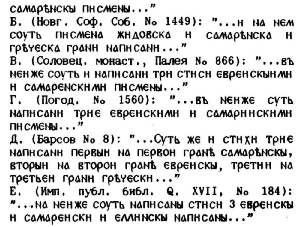 ʺ... на немже соуть писмена жидовъска и самаренска грани написани...”