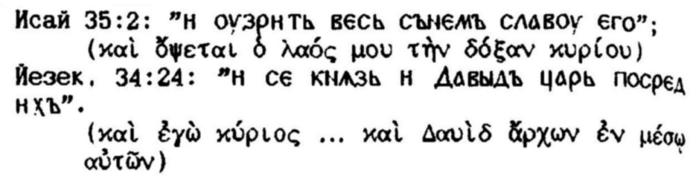 Преди повече от десет години в една моя статия, посветена на ритмично-синтактичните структури на ПЖК, изтъкнах обстоятелството, че третият стих от надписа върху Соломоновия потир съдържа цитати от Исай 35:2 и Йез. 34:24. Изненадващо е обстоятелството, че това е убягнало от вниманието на другите учени. Пак там подчертах също така, че в текста на ПЖК — в този вид, в който е стигнал до нас — има текстово разместване между думите на двата цитата [12].