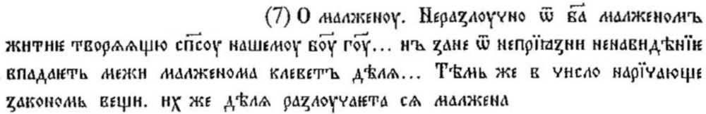 [ЗСЛ, гл. 15, 43]. Цитируем текст по Варсонофьевскому списку (гл. 17), так как в Новгородском читается мѣсть; в других списках читается то же сокращение, получившее раскрытие в виде милость в некоторых списках ЗСЛ. Текст испорчен, слово мъд (ь) лость восстанавливается из чтения при помощи греч. ...αθυμία ‘праздность, леность, беззаботность, беспечность’. Возможно, такое искажение связано с транслитерацией глаголической рукописи ввиду графического сходства букв