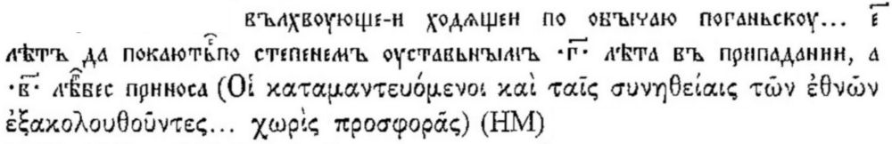 21. Ср. 53 апостольское правило: Εἴ τις ἐπίσκοπος... ἐν ταῖς ἡμέραις τῶν ἑορτῶν οὄ μεταλαμβάνει κρεῶν καὶ οἴνου, βδελλαιρείσθω καὶ οὄ δ’ἄσκησιν, καθαφείσθω... [PG 137, coli. 145] - “Аще кто, епископ... во дни праздников не вкушает мяс и вина, гнушался, а не ради подвига воздержания: да будет извержен“.