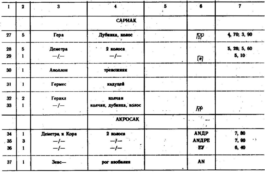 — Сариака: 5 — Дионисополь (3); 6 — Одесс-Балчик (1); 7— Каварна (1); 8 — м. Калиакра (1); 9 — Ваклино (1); 10 — Мангалия (1); 40 — Котловина (1); 41 — Тира?, о. Змеиный (2)