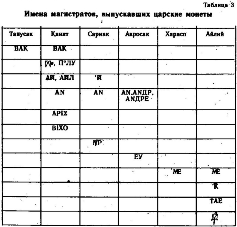 Таблица 3. Имена магистратов, выпускавших царские монеты
