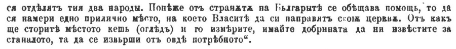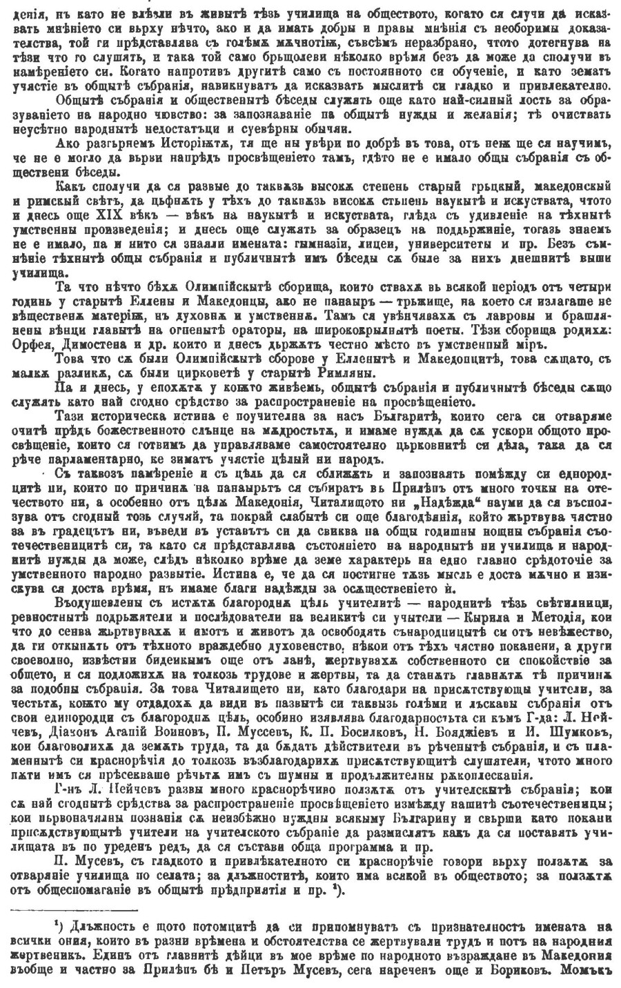 Най-послѣ трѣба да знаемъ, че първенство и завидно положение се добиватъ само съ заслуги къмъ обществото, че нашето спасение се заключява само въ съединението и братската любовь, че само въ такъвъ случай можемъ съ успѣхъ да крачимъ къмъ цѣльта, която ни е прѣдначертало самото провидѣние и юнашки да бранимъ народното си достояние отъ чуждото посегателство. Тъй като е работата, трѣба да извинимъ нашатѣ събратия за тѣхната необмислена постѫпка и като знаемъ, че и отъ двѣтѣ страни е сторена погрѣшка, то най-умното ще е да покриемъ съ пердето на забвението всичко до сега сторено, и за хатъра на общото добро да се потрудимъ да възвърнемъ прѣжната си братска любовъ и съгласие и пр.