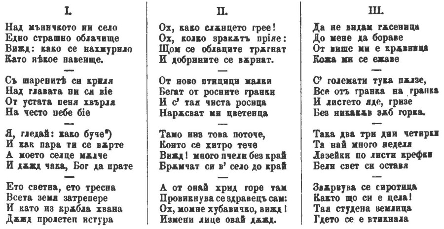 Ето и нѣкои отъ стихотворенията, които той прѣдаваше за свои произведения:
