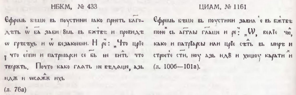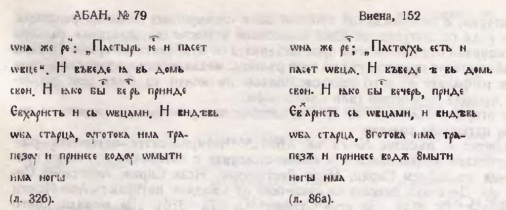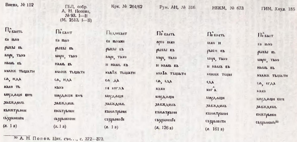 [[ Виена, № 152 / ГБЛ, собр. А. Н. Попова, № 93. I—II (М. 2513. I—II) / Крк, № 264/64 / Рум. АН, № 316 / НВКМ, № 673 / ГИМ, Хлуд. 185 ]]