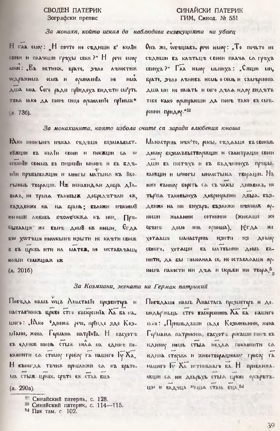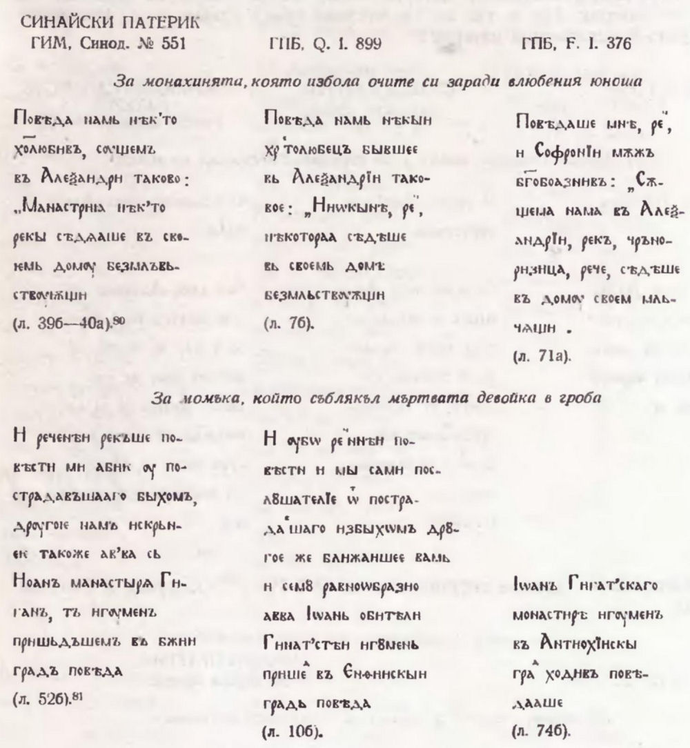 13. И. И. Срезневский. Синайский патерик. — В: Сведения и заметки о малоизвестных и неизвестных памятниках. LXXXII. Приложение към Записки Академии наук T. XXXIV, № 4. СПб., 1879, с. 50.
