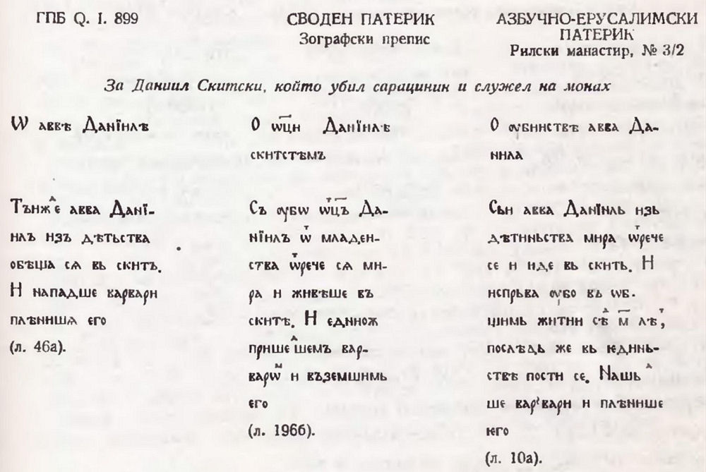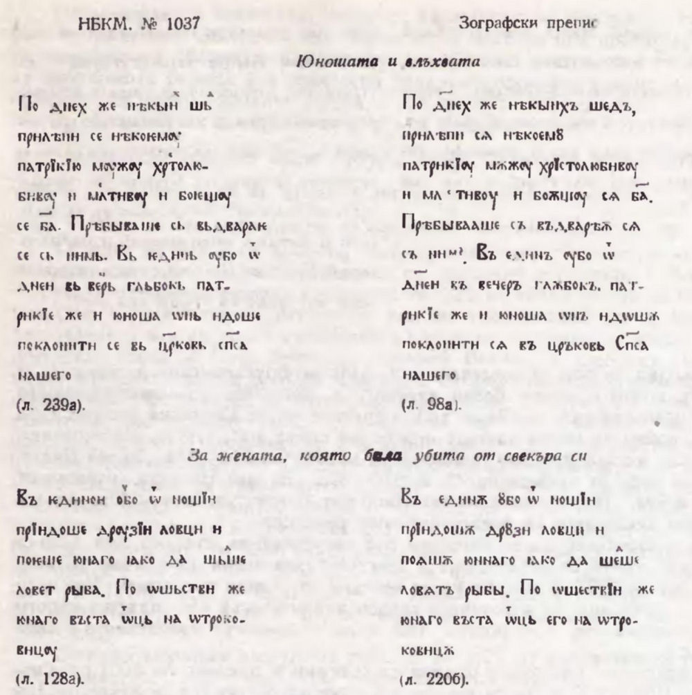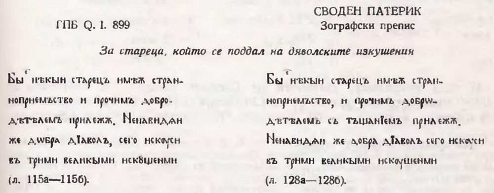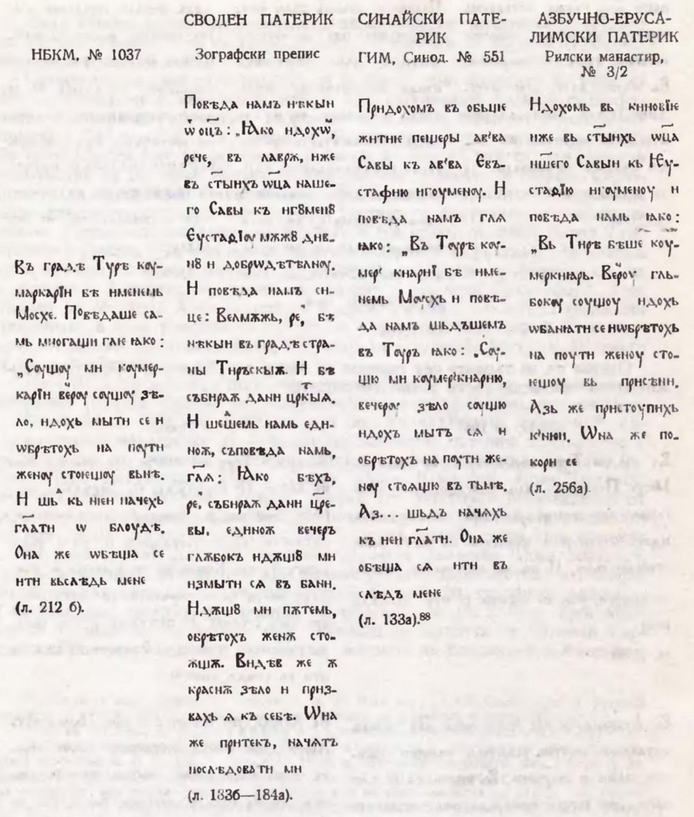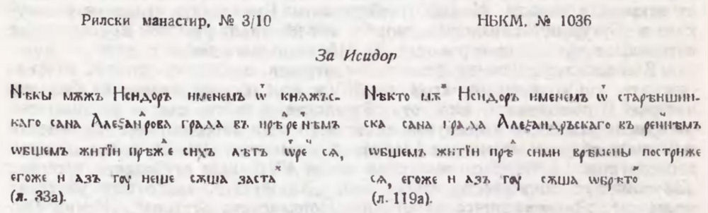 17. Смятам, че разказът е преработен именно от съставителя на Берлинския сборник, тъй като тук са установени значителни изменения в текстовете и на други творби : разказите „Музикантът Филимон" (вж. V. Jagić. Opisi i izvodi ... с. 58—59), „Поȣчение ѿ Лимониса ходѧщимь по црквамь латиньскымь и жидовскымь" (срв. Синайский патерик, с. 282—284), „3а буквите" (вж. К. М. Куев. Черноризец Храбър. С. 1967, с. 167—170).