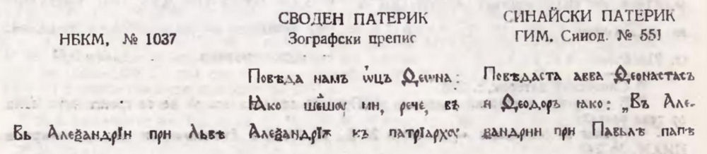 1. Още през 1846 г. В. М. Ундолски отбелязва (за славянските сборници): „нет почти ни одного сборника, в котором не было бы статьи из патерика“ (В. М. Ундольский. Библиографические разыскания по случаю выхода описания библиотеки Московского общества истории и древностей российских, составленного П. Строевым.—Москвитянин. 1846, № II—19, с. 198).
