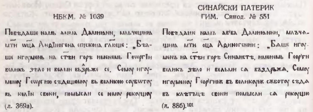 21. В сравнение с по-ранния текст, поместен в Синайския патерик, ГИМ, Синод. № 551 (вж. Синайский патерик, с. 182—187).