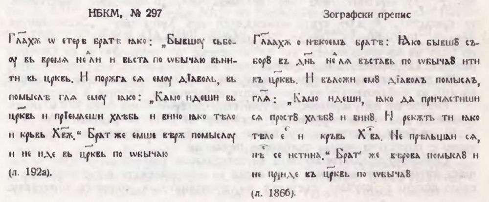 Цитираният патеричен разказ е преписан от поп Пунчовия сборник без изменения в ръкопис № 722, НБКМ. [210]